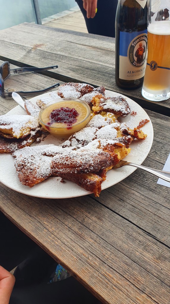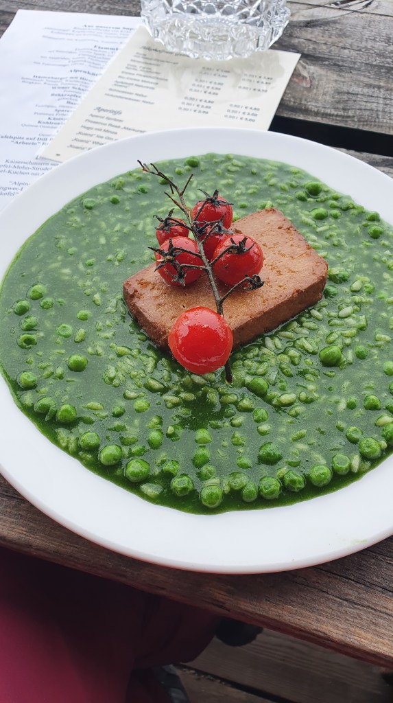 Nach insgesamt dreieinhalb Stunden, wobei wir über eine halbe Stunde am Laserzsee verbracht haben, kommen wir wieder an der Dolomitenhütte an. Diese wurde 1936 von Josef Amort errichtet. Er war damals der Hüttenwirt der Karlsbader Hütte und startete mit dem Bau der Hütte auf seinem Lieblingsplatz zwischen Lienz und dem Laserzkessel. Und wer in den Lienzer Dolomiten unterwegs ist, sollte sich eine Einkehr in der Dolomitenhütte nicht entgehen lassen. Neben einer grandioser Aussicht bietet die Hütte nämlich hervorragendes Essen. Zu unserer positiven Überraschung finden wir auch viele vegetarische und vegane Gerichte auf der Speisekarte, was für Berghütten ja nicht gang und gäbe ist. Und so genießen wir unser verdientes Mittagessen nach einer eindrucksvollen Wanderung in den Lienzer Dolomiten.