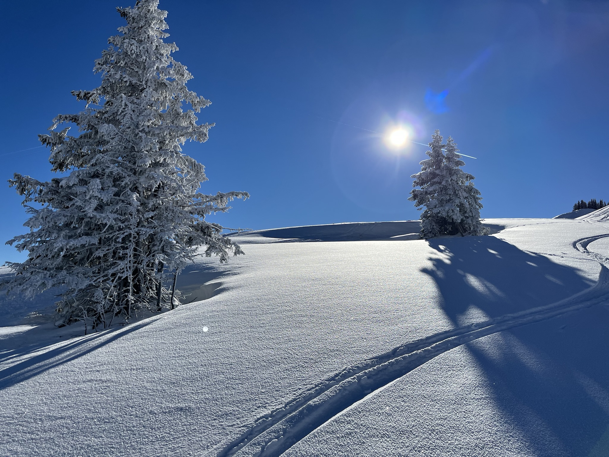 Fehlen nur noch luftiger Pulverschnee und Sonnenschein, der verschneite Landschaften zum Glitzern bringt, in die man seine Spuren ziehen darf. Solch Traumbedingungen sind uns auf der Tour untergekommen, die ich heute vorstellen möchte. Und das beste – sie ist fast die ganze Saison über machbar und auch für Anfänger geeignet.