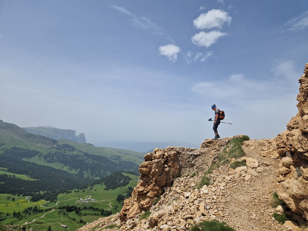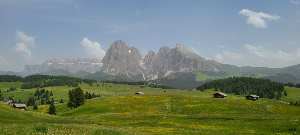 Der diesjährige Sommerurlaub hat uns (Laura & Fabi) nach Südtirol – genauer gesagt auf die Seiseralm – verschlagen. Deren sanfte, satt grüne Almwiesen, die von vielen bunten Blumen geziert werden, stehen im krassen Kontrast zu den hellen und scharfkantigen Felsformationen der zahlreichen Dolomitengipfel, die das Hochplateau umgeben und überragen. Neben dem Schlern, dem Wahrzeichen Südtirols, sind wohl Lang- und Plattkofel die prägendsten Gipfel. Und da letzterer als mittelschwere Wanderung beschrieben wird, ist er auch unser heutiges Ziel, welches uns allerdings unsere Grenzen aufzeigen sollte.
