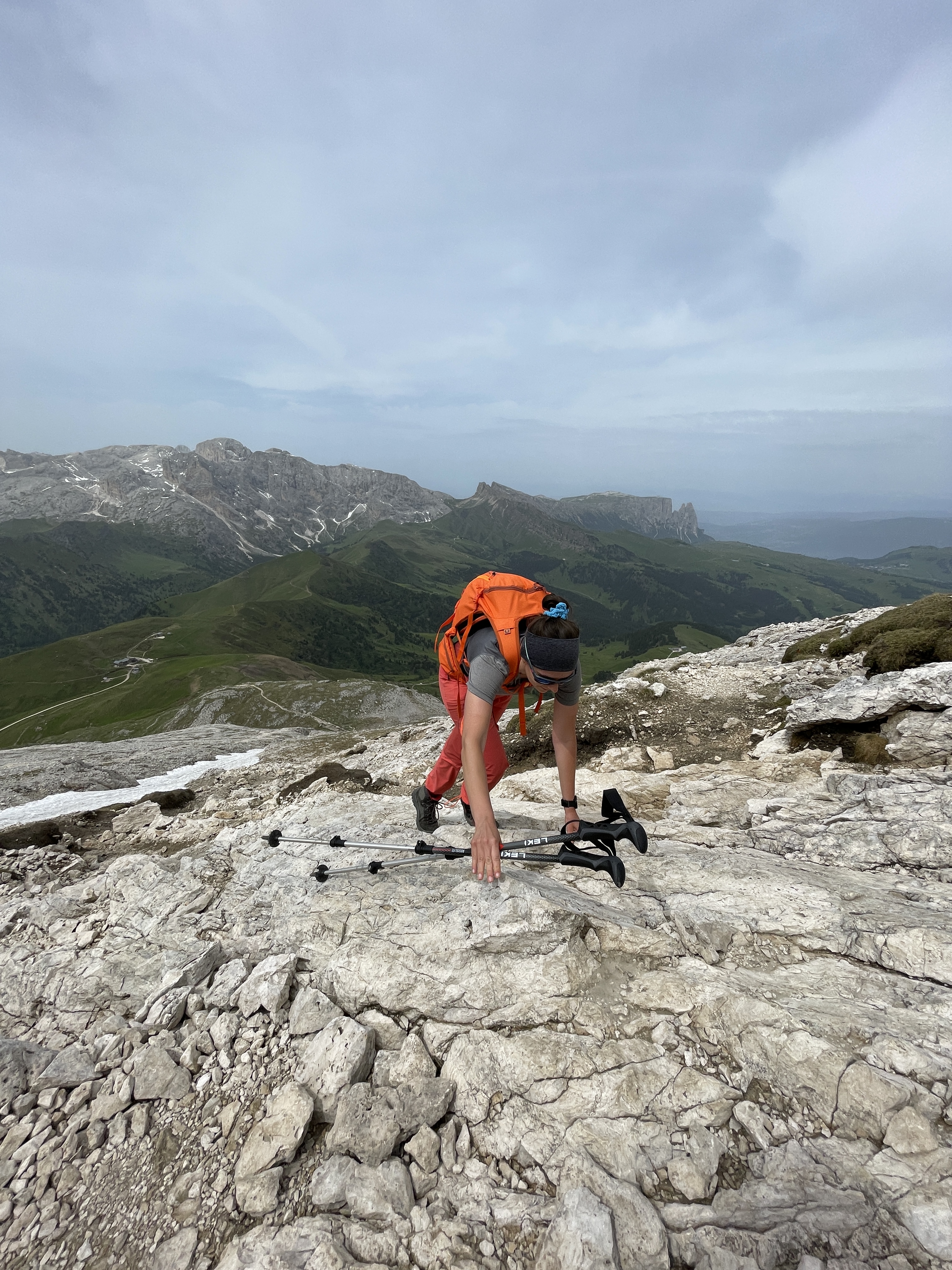 Eine wunderschöne Bergtour in den Dolomiten, die einen grandiosen Blick über Seiseralm und Rosengarten bis hin zur Marmolada bietet. Gute Kondition und Trittsicherheit sind ein Muss. Die Einstufung als T2 Wanderweg ist meiner Meinung nach nicht zutreffend – der obere Teil, insbesondere mit Schneefeldern, ist eher als T3+ zu sehen.