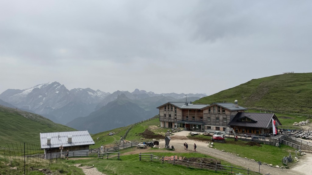Unabhängig, für welche Aufstiegsvariante (Wandern, Bike oder Lift) man sich entschließt ist das erste Etappenziel die Plattkofelhütte, welche sich auf beinahe 2.300m Höhe befindet. Der Weg dorthin ist eine Schotterstraße, die durchgehend steil nach oben führt. Von der Bergstation des Liftes haben wir hierher etwa 40 Minuten gebraucht.